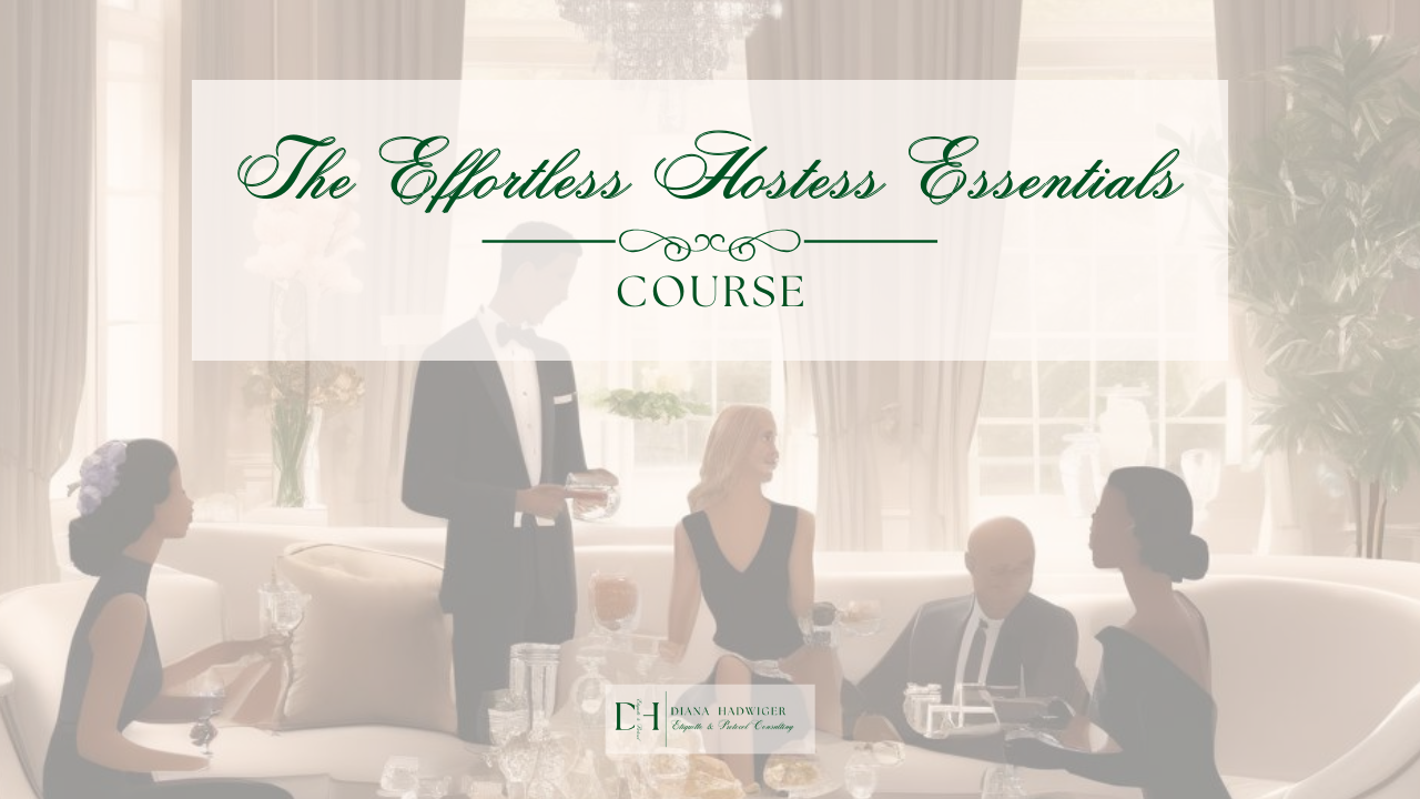Disclaimer: This mini-course is designed to enhance your hosting skills and elevate your home. Upon purchase, you will receive instant access to all course materials. Please note that all sales are final and non-refundable [except for in the case of emergencies which will be agreed on between the client and Diana Hadwiger Etiquette and Protocol Consulting LLC].